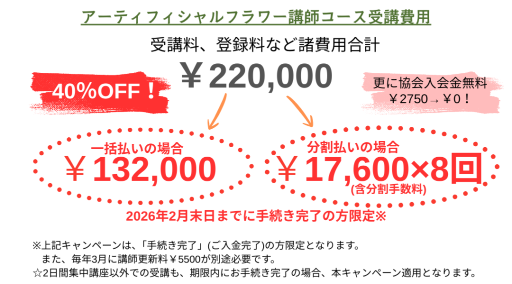<アーティフィシャルフラワー講師コース通常料金>